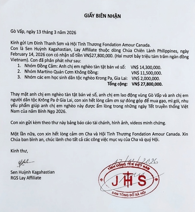 Previous article: Thư cảm ơn của Lm. JB Nguyễn Tấn Sang (Caritas - Mỹ Tho)