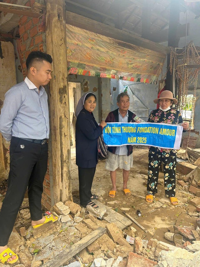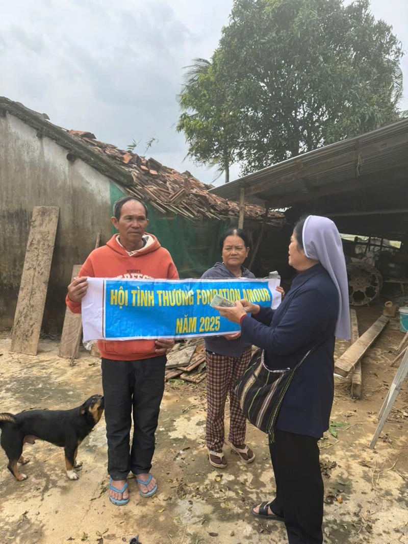 Trước những hậu quả do bão số 13 đã gây ra thiệt hại rất lớn cho bà con giáo dân về Người, Tài sản, Vật nuôi tại Miền Trung Việt Nam. Đối diện với những khó khăn đó, con đã nhận được sự hỗ trợ của Cha để giúp cho bà con vùng lũ với số tiền 100.000.000 vnđ ( Một trăm triệu đồng chẵn).