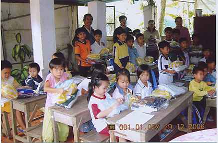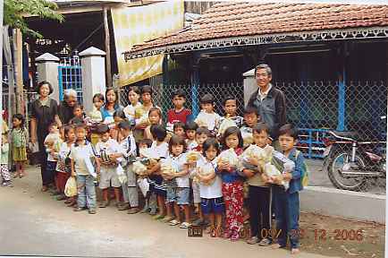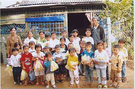 Con xin gởi kèm theo đây một vài hình ảnh các em nhận được quà trong dịp lễ Giáng Sinh vừa qua. Thực ra, vì quá bận rộn lo cho giáo xứ mừng lễ, sau đó, là Ngày Đền Ơn Đáp Nghĩa, dành cho các Cha đang nghỉ hưu tại Cần Xây… cho nên, con chỉ có thể trao quà cho các em mấy ngày sau đó. Năm nay, ngoài quần áo, các em còn nhận được bánh kẹo, và đặc biệt là kem đánh răng và bàn chải răng. Bởi vì, rất nhiều em không biết giữ vệ sinh răng miệng; hậu quả là, răng hư hỏng nhiều. Hy vọng, trong tương lai, các em sẽ khá hơn.