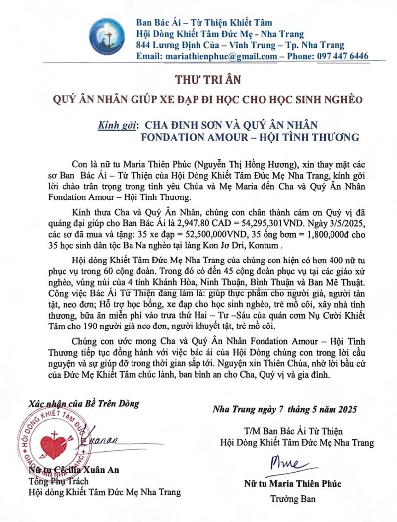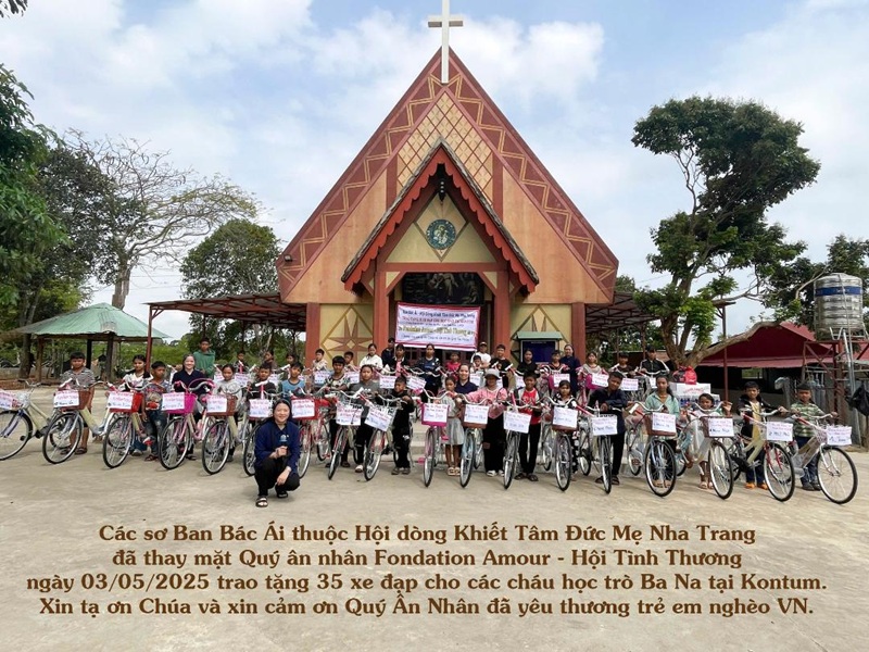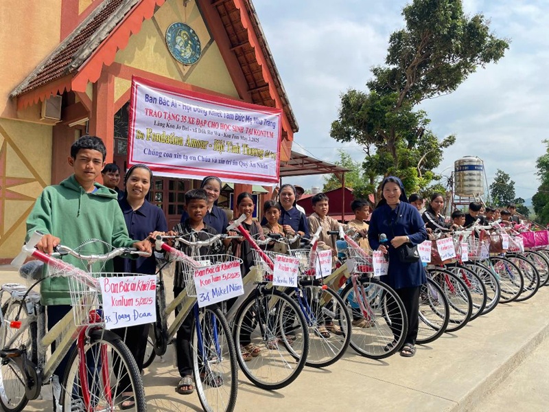 Ban Bác Ái Dòng Khiết Tâm Đức Mẹ trao 35 xe đạp do Hội Tình Thương tài trợ tại Kontum 03/05/2025